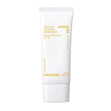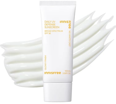 Description: Innisfree Daily UV Defense SPF 36 is a lightweight, award-winning Korean sunscreen that provides broad-spectrum UVA/UVB protection while keeping skin hydrated and glowing. Infused with botanicals like green tea, sunflower seed oil, and Centella Asiatica (Cica), it soothes and nourishes skin without leaving a white cast or greasy residue, making it ideal for all skin tones and types, including sensitive and oily skin. The vegan, cruelty-free, and clean formula layers smoothly under makeup, absorbs quickly, and delivers a natural dewy finish. Customers love its lightweight feel, instant blendability, and effective protection, calling it a top choice for daily facial use.