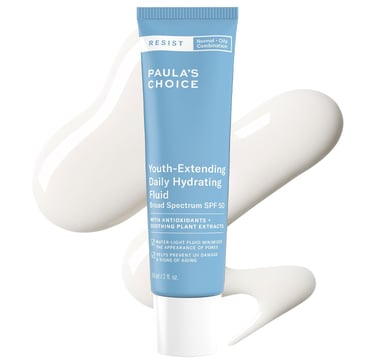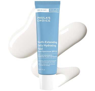 Conclusion: Paula's Choice RESIST Daily Hydrating Fluid SPF 50 is a high-performance facial sunscreen that merges broad-spectrum sun protection with antioxidant-rich, anti-aging skincare. Its water-light, oil-free formula absorbs instantly, leaving a soft satin-matte finish without white cast or greasy residue—ideal for oily, combination, and sensitive skin. Packed with antioxidants like green tea, grape seed, and pomegranate, it helps defend against environmental damage while calming and hydrating the skin. Makeup-friendly and non-comedogenic, it layers smoothly without pilling and doubles as a refined daily moisturizer. However, it’s not water-resistant and requires reapplication during sun exposure.